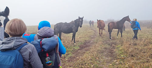 Jeżeli stado jest bardzo blisko ścieżki, konie są pobudzone lub masz złe przeczucie – rozważ zawrócenie i wybranie alternatywnej trasy.