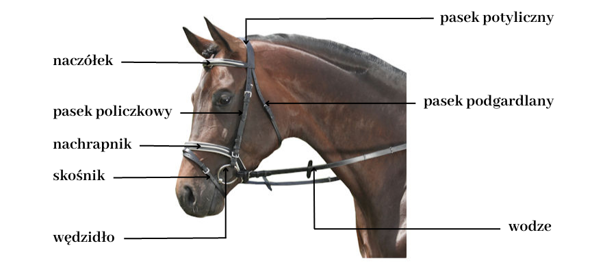 Na schemacie pokazujemy najbardziej popularne ogłowie z nachrapnikiem kombinowanym.