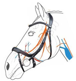 Do pasków policzkowych w ogłowiu przypina się wędzidło, a do wędzidła wodze.
