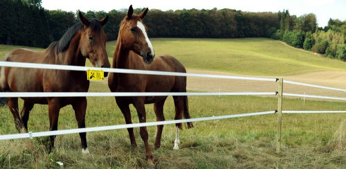Na ustawionych palikach rozciągamy w dwóch rzędach taśmę 2 lub 4 centymetrową albo plecionkę. Taśma jest bardziej widoczna dla koni, jednak jest słabsza niż plecionka.