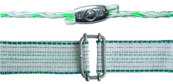 Aby połączyć ze sobą dwie taśmy, na przykład gdy chcemy przedłużyć ogrodzenie, lub po jej zerwaniu, stosujemy specjalne złączki.