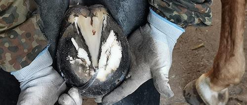 Przed wizytą kowala należy wyczyścić dokładnie końskie kopyta za pomocą szczotki do kopyt i kopystki .